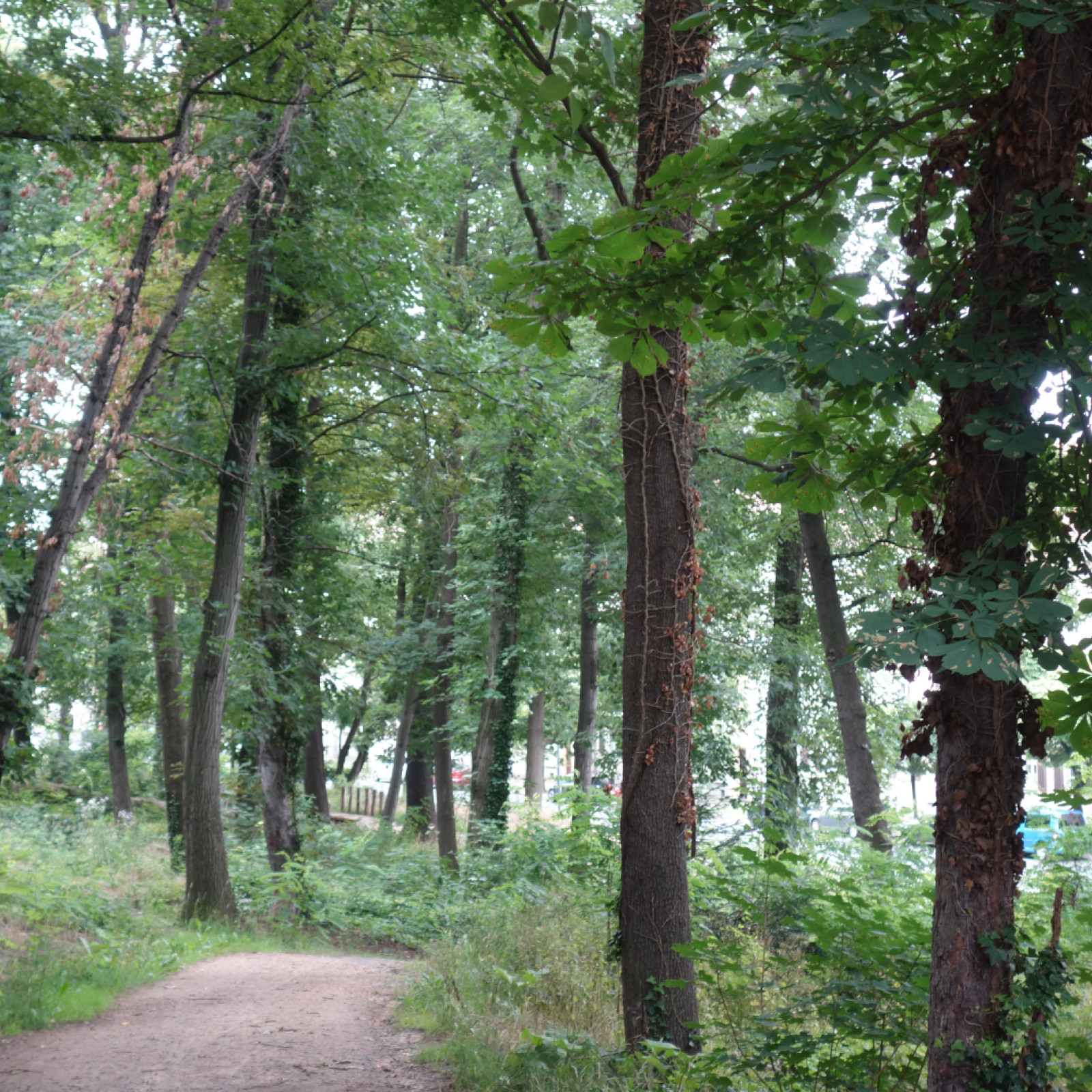Der unmittelbar angrenzende Hechtpark ist ein kleiner Park (eigentlich ein kleiner Wald) inmitten der Großstadt.